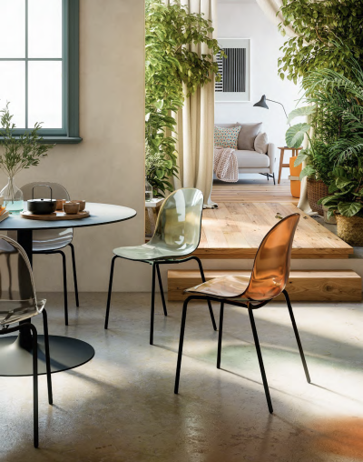 La sedia ACADEMY, best seller della collezione Connubia, si distingue per il suo design leggero e versatile. La seduta, disponibile anche in policarbonato trasparente, presenta forme semplici e sinuose, studiate per adattarsi a qualsiasi ambiente.