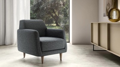 La poltrona ADELE, dal design contemporaneo, unisce una struttura in legno solida a una morbida imbottitura in poliuretano espanso, per un comfort immediato. È completamente sfoderabile e può essere rivestita in tessuto, microfibra, ecopelle o pelle (non sfoderabile).
