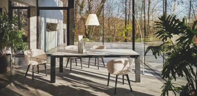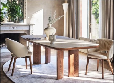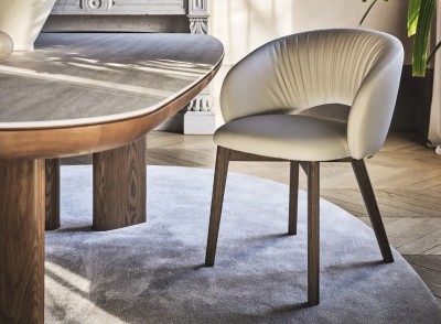 Disponibile anche nella versione Wood, con gambe in legno, mantiene lo stesso design armonioso e accogliente perfetto per la zona pranzo.