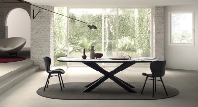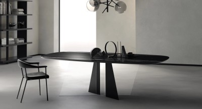 Il top COSMOPOLITAN unisce legno e vetro in un gioco di contrasti tra consistenze e trasparenze. Il piano elegante, valorizzato da finiture raffinate, dona carattere e leggerezza al tavolo, trasformandolo in un elemento d’arredo sofisticato e scenografico, perfetto per ambienti moderni e di classe.