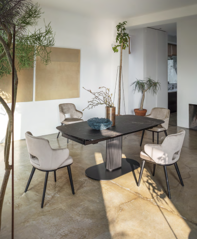 Foyer è una delle sedie best seller di Calligaris, caratterizzata da volumi generosi e comfort ricordando una poltroncina. Lo schienale avvolgente e la seduta con cinghie elastiche offrono un’accoglienza impeccabile. Disponibile con diverse basi e quattro varianti di scocca — anche con braccioli e apertura posteriore — unisce stile, praticità e comodità.