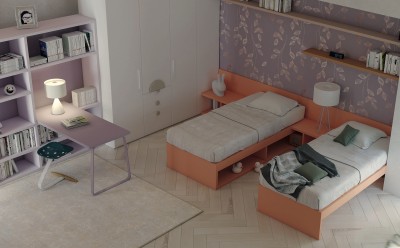 Disponibili in versione singola o doppia, i LETTI A TERRA sono una soluzione versatile e tradizionale per camerette di media grandezza. Possono essere scelti liberamente o abbinati ad armadi, scrivanie e altri arredi, offrendo ampie possibilità di personalizzazione in stili, materiali e colori.