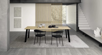 Il top MANHATTAN combina pochi elementi essenziali per un design leggero e coerente. Il piano in rovere massello con taglio a diamante si abbina ai basamenti in ferro e vetro, creando un equilibrio moderno tra solidità e trasparenza. Un pezzo d’arredo elegante e luminoso.