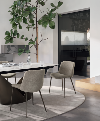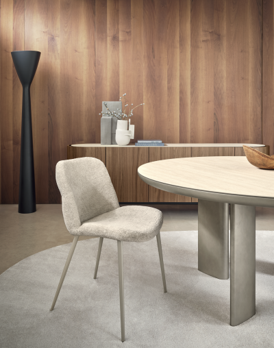 ONDA deve il suo nome alla particolare sagomatura del sedile, ispirata al movimento fluido delle onde del mare. Le proporzioni morbide e armoniose si bilanciano con le gambe sottili in metallo, che le conferiscono un’eleganza leggera e contemporanea.