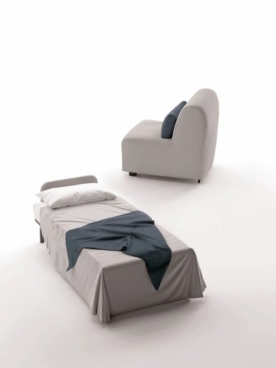La poltrona TEA, dal design moderno, è la soluzione ideale per avere un letto aggiuntivo senza sacrificare spazio. Con pochi gesti si trasforma in un comodo letto singolo con materasso alto 11 cm. Il rivestimento è sfoderabile e le dimensioni compatte la rendono perfetta per ogni ambiente.